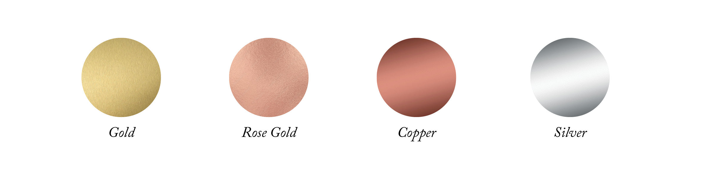Select from our curated foil palette, designed to bring a luminous touch to every detail—from invitations to finishing accents—for a beautifully seamless look.