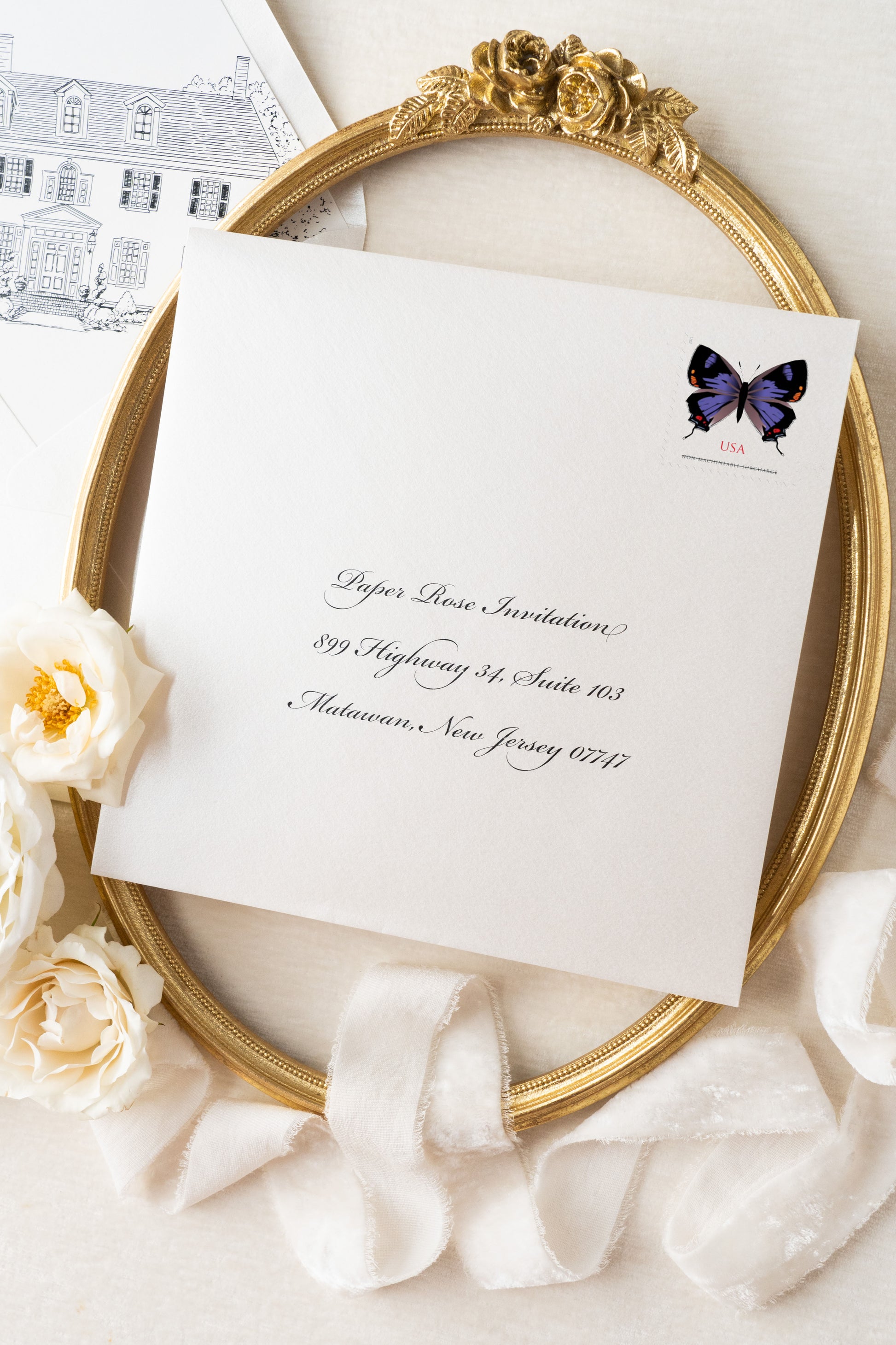 Our invitation suites are sold as customizable packages and include fully addressed envelopes in your selected color and paper type. All pieces ship flat and require assembly upon delivery.