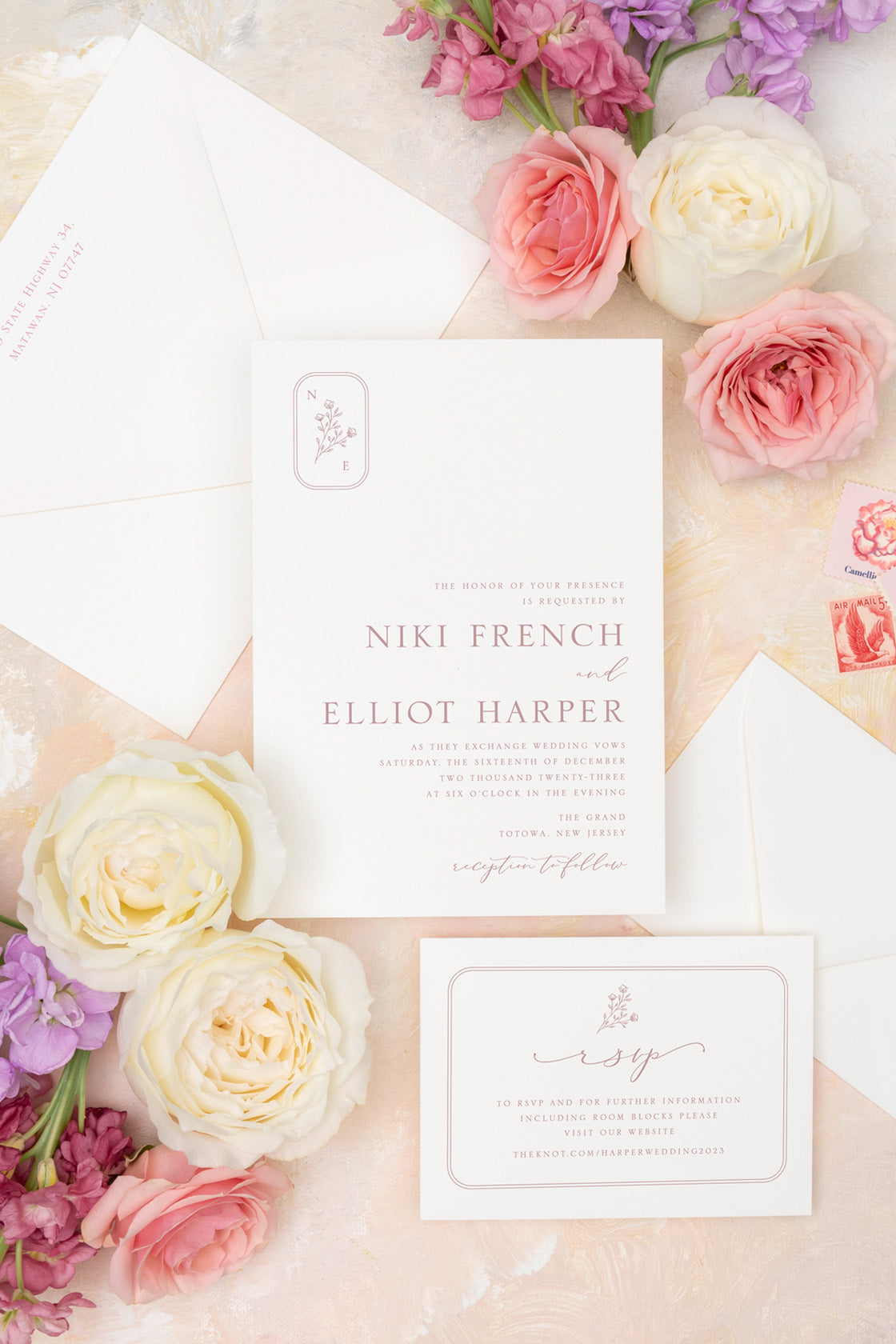(optional printed return-addressed RSVP envelopes)